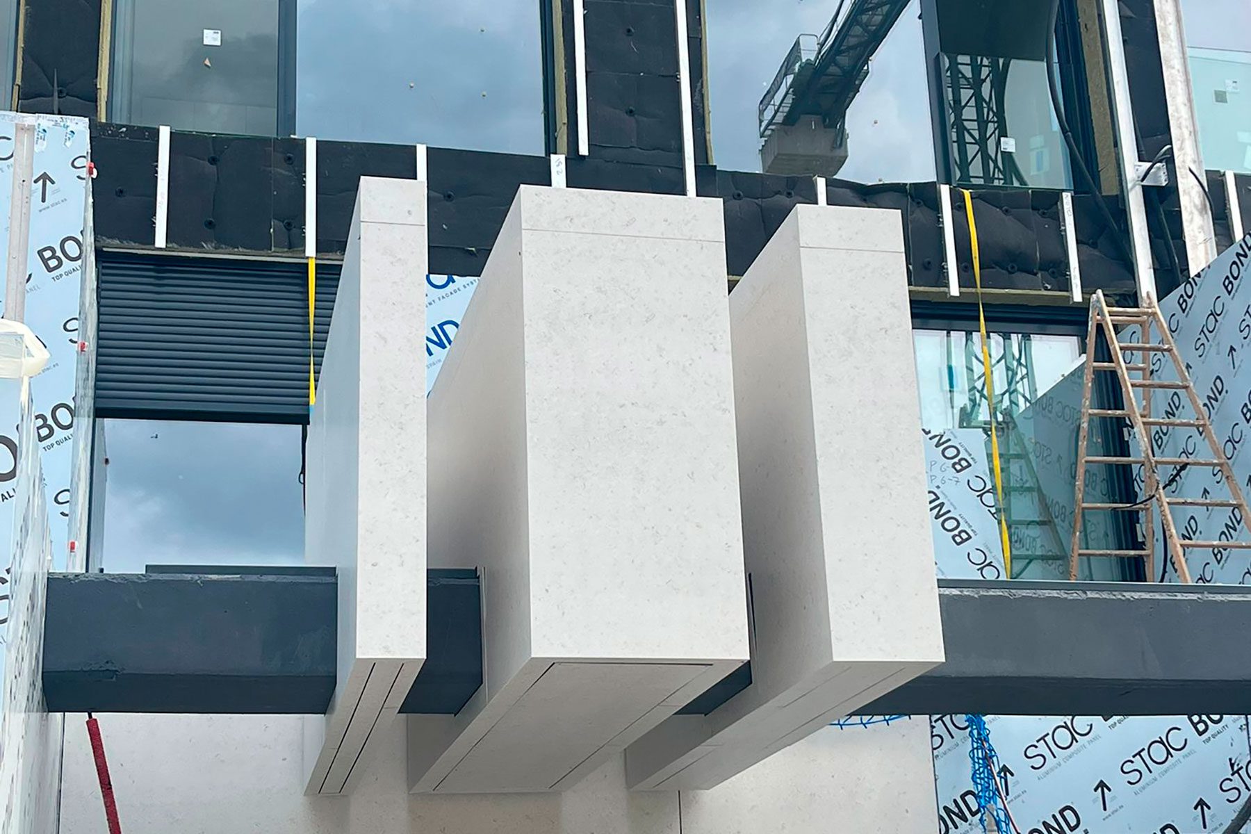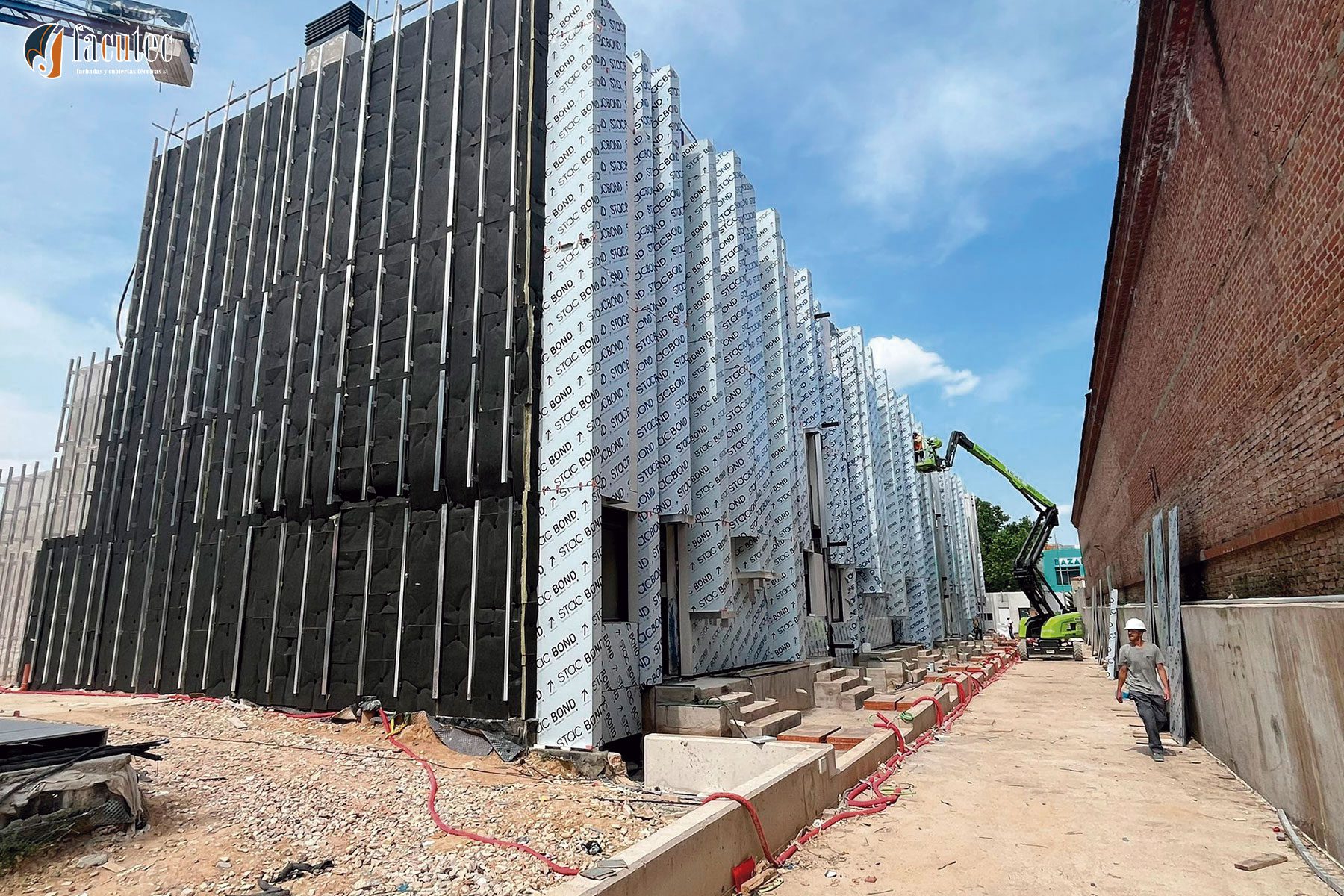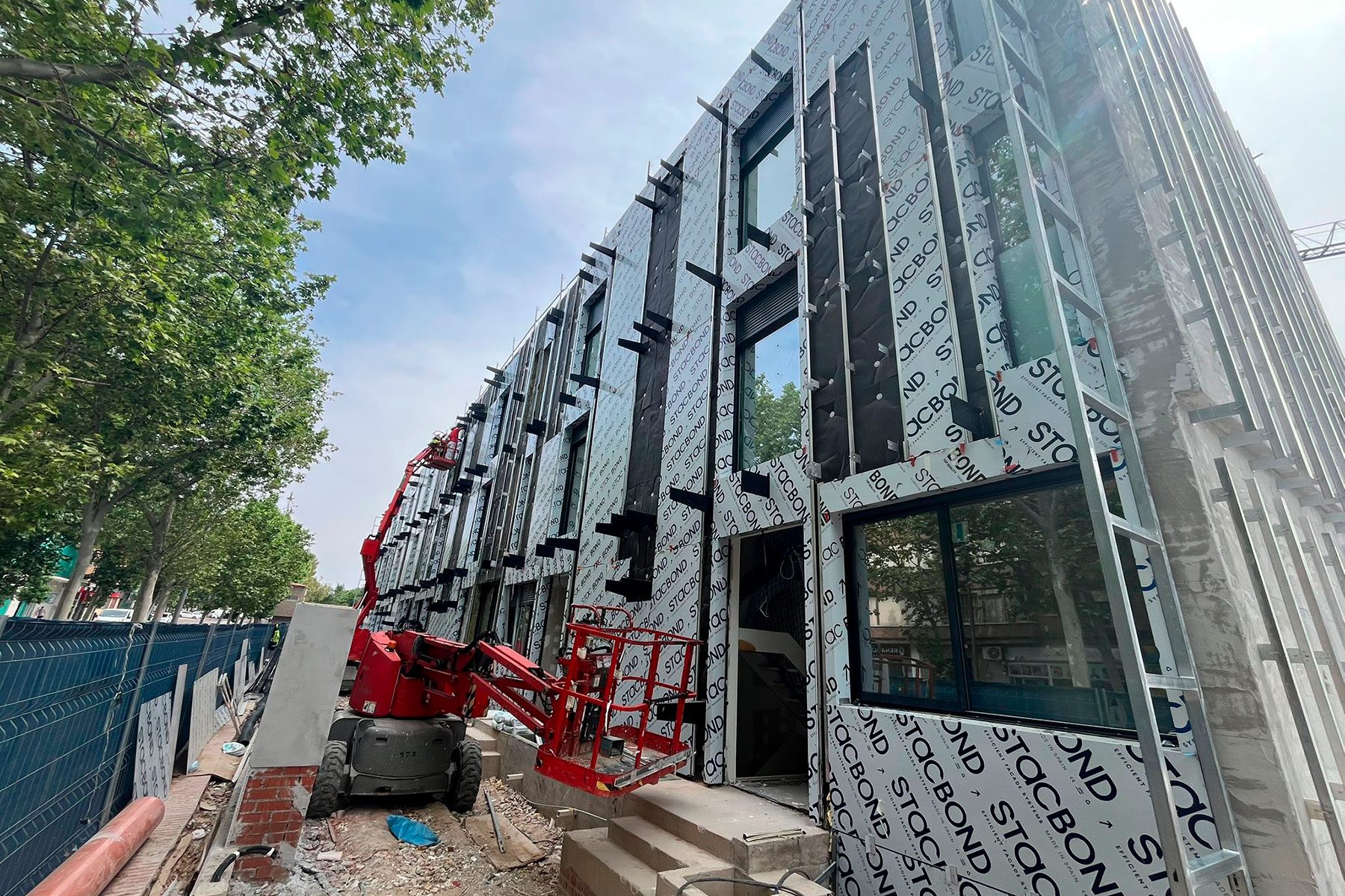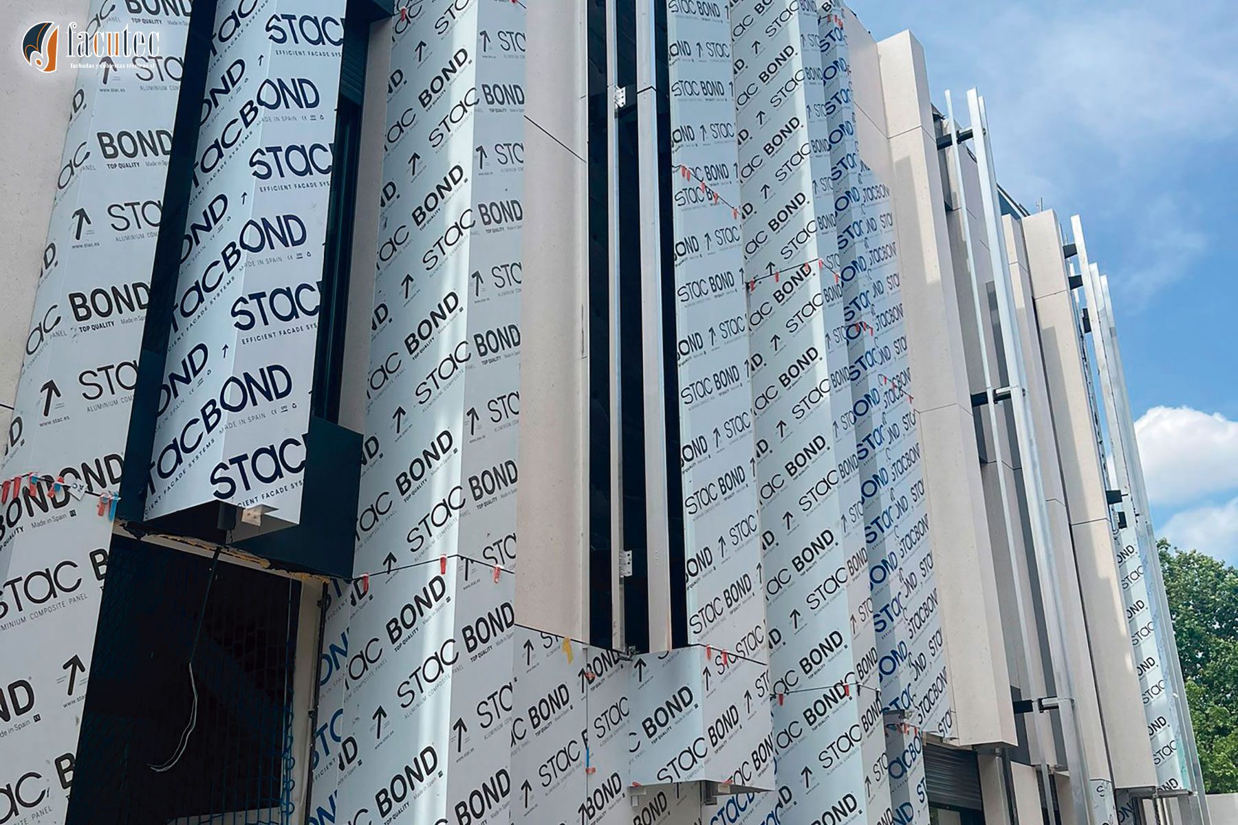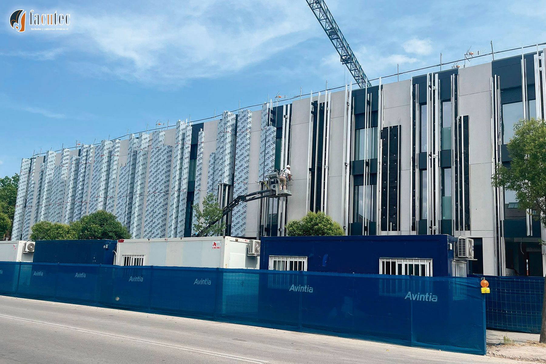 Facutec ha instalado una envolvente muy sofisficada y arquitectónica a base de grandes volumenes que se han conseguido con revestimientos y fachadas de panel composite de aluminio y por otro lado, nuestra instaladora AMS Instalaciones ha ejecutado los sistemas de yeso laminado, aislamientos termo-acústicos y soluciones de compartimentación relacionada con la protección pasiva contra incendios.