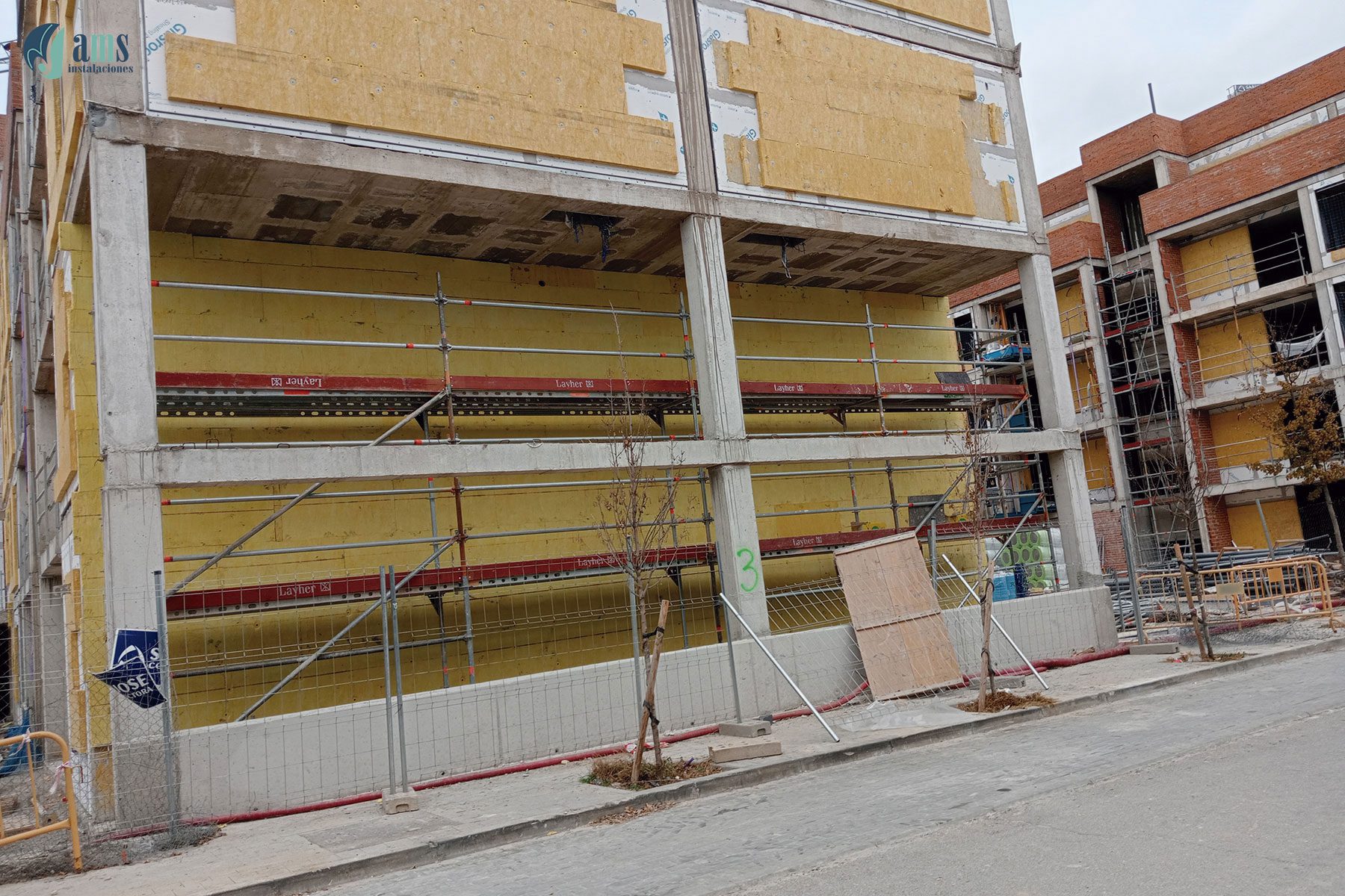 En la ambiciosa iniciativa de la comunidad de Madrid para aumentar la construcción de viviendas destinadas a alquiler asequible mediante la colaboración público-privada, nuestra instaladora AMS participó en el proyecto mas destacado de la Fase I en Valdebebas donde en la obra de 441 viviendas, ejecutamos los sistemas de yeso laminado (tabiquería, trasdosados, falsos techos), los aislamientos asociados, los sistemas de compartimentación relacionados con la protección pasiva contra incendios y en la insggalación de una fachada ligera sobre la que posteriormente otros industriales, ejecutaron un sistema SATE.