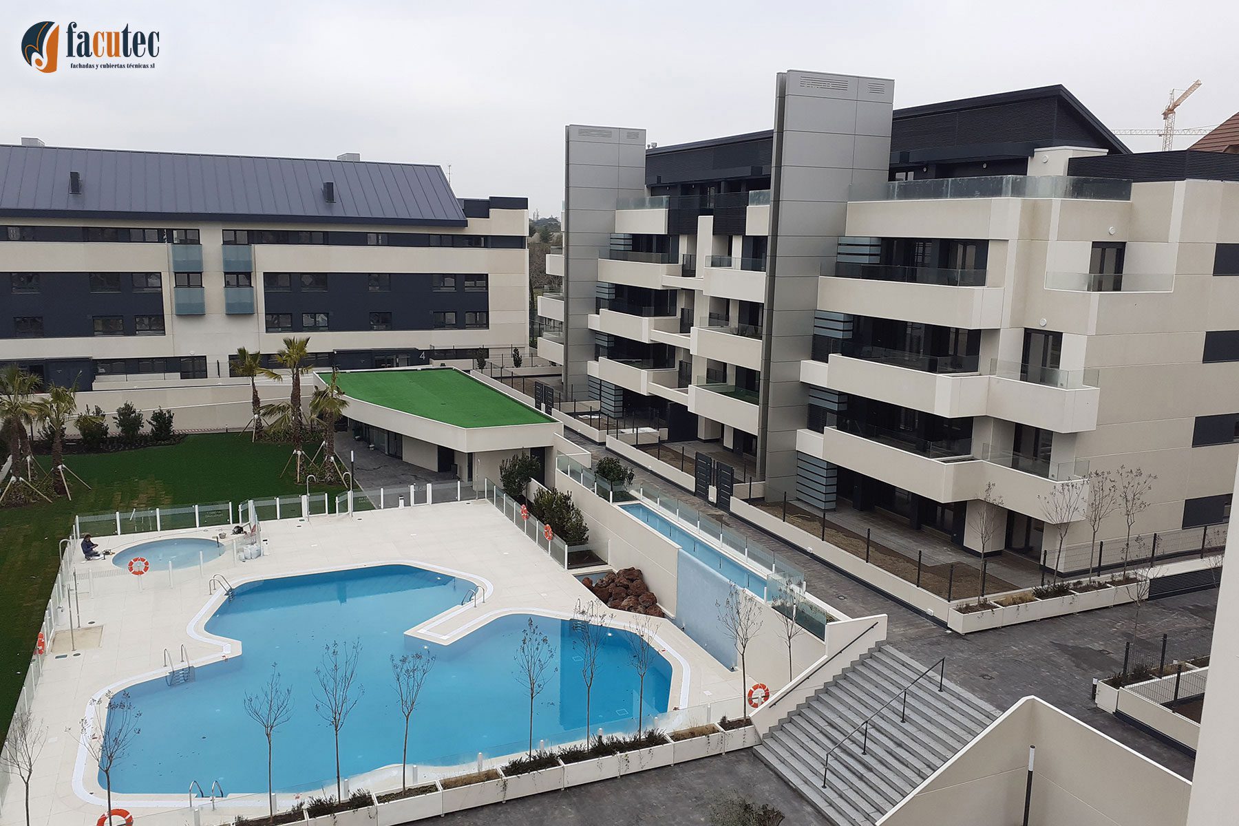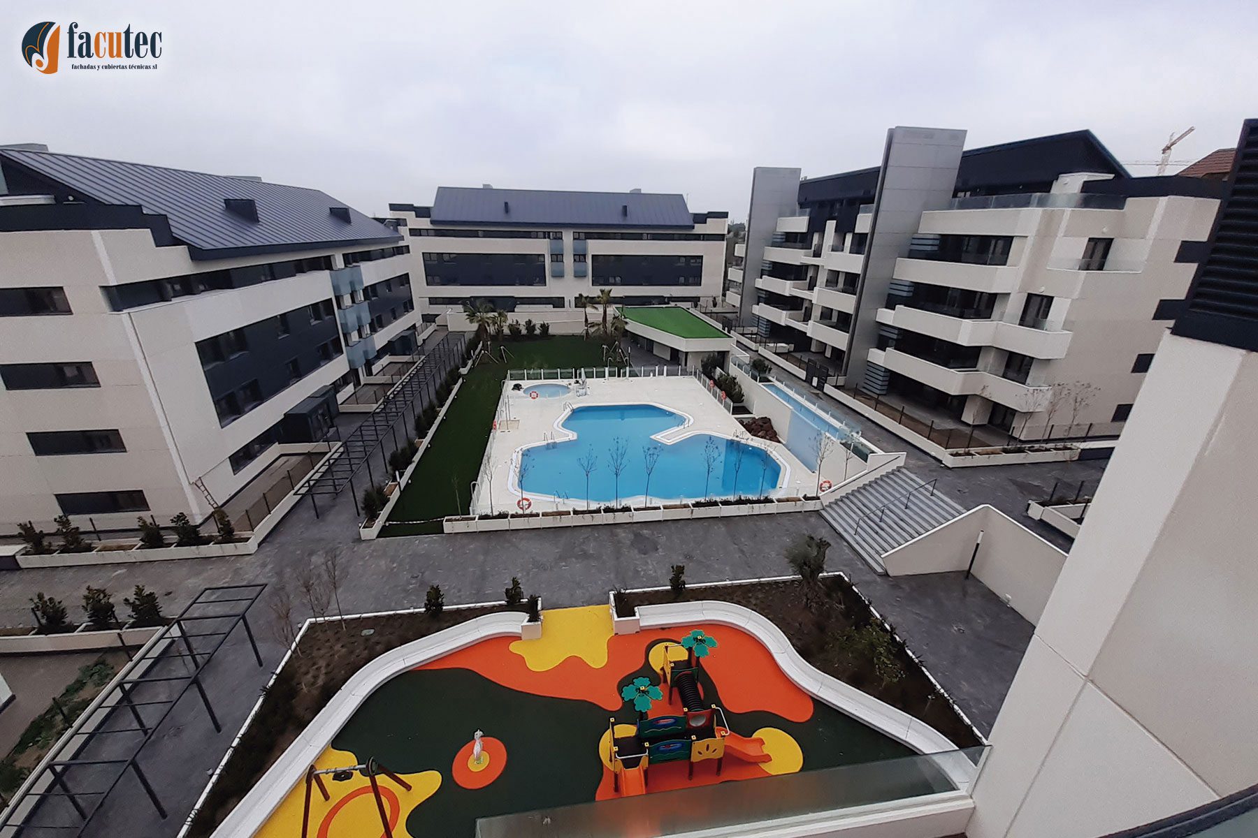En el año 2020, Facutec participó en la construcción de 98 viviendas en Boadilla del Monte, donse instalamos la fachada ventilada de panel composite de aluminio