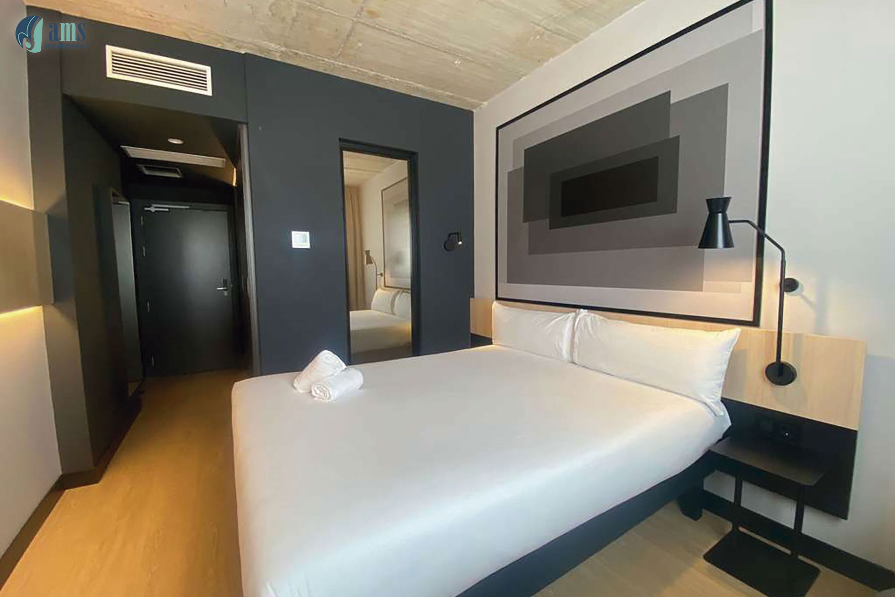 Una obra mas ejecutada por el Grupo AMS en el sector hotelero, es por la participación de nuestra instaladora AMS Instalaciones en la construcción de un nuevo hotel, en la zona de Las Tablas en Madrid, de la cadena Ibis, donde hemos ejecutado los sistemas de yeso laminado (tabiquería, trasdosados, falsos techos), los falsos techos registrables de yeso laminado, las soluciones de compartimentación relacionadas con la protección pasiva contra incendios y los aislamientos térmicos y acústicos asociados a todos los sistemas anteriores.