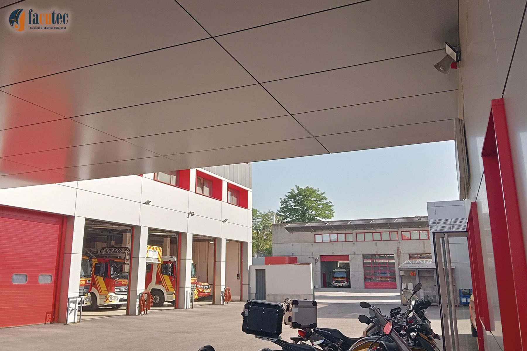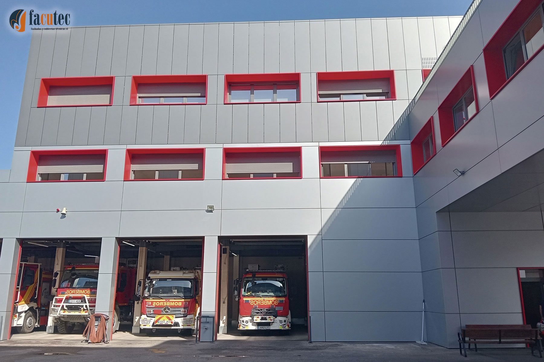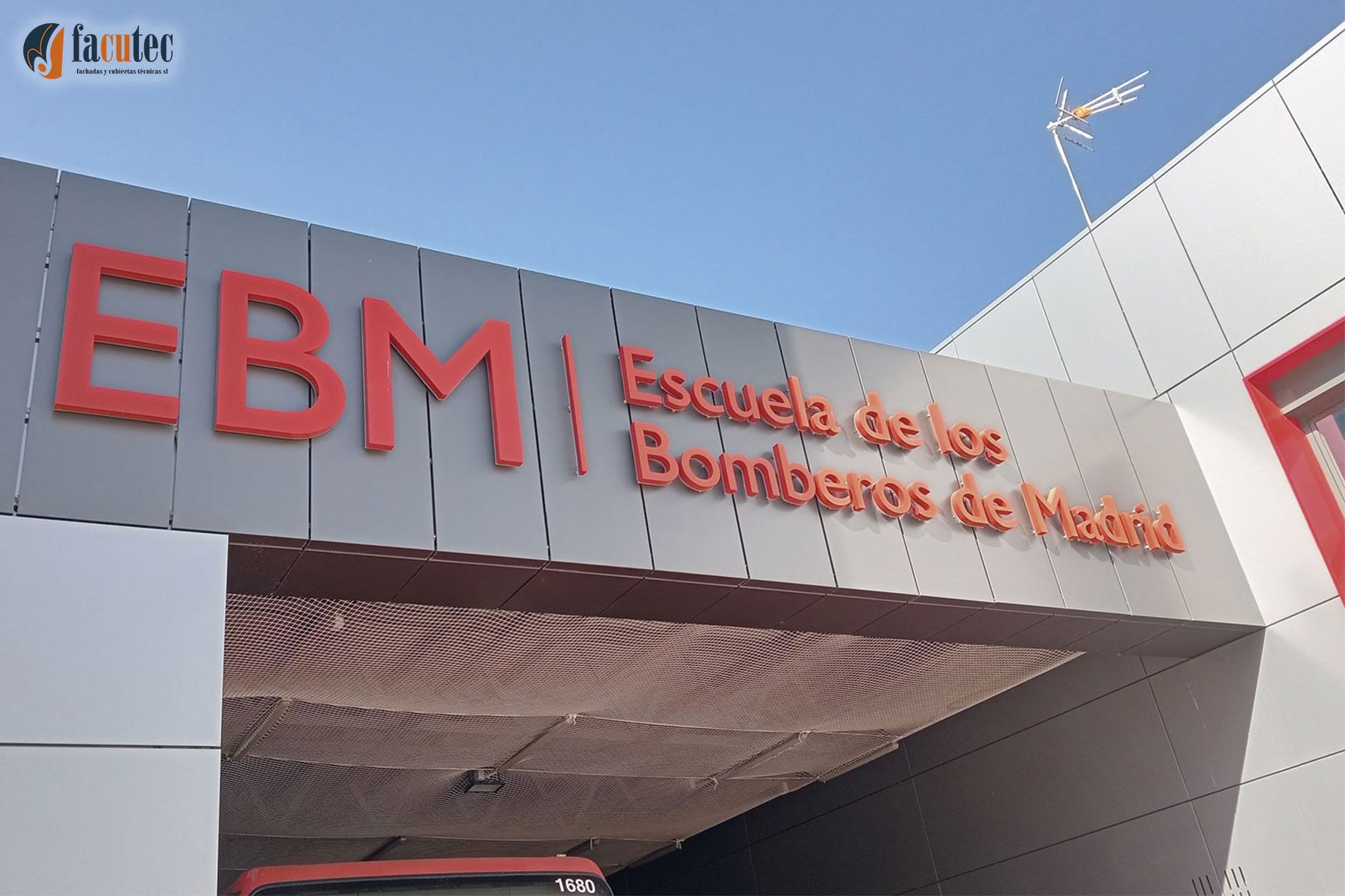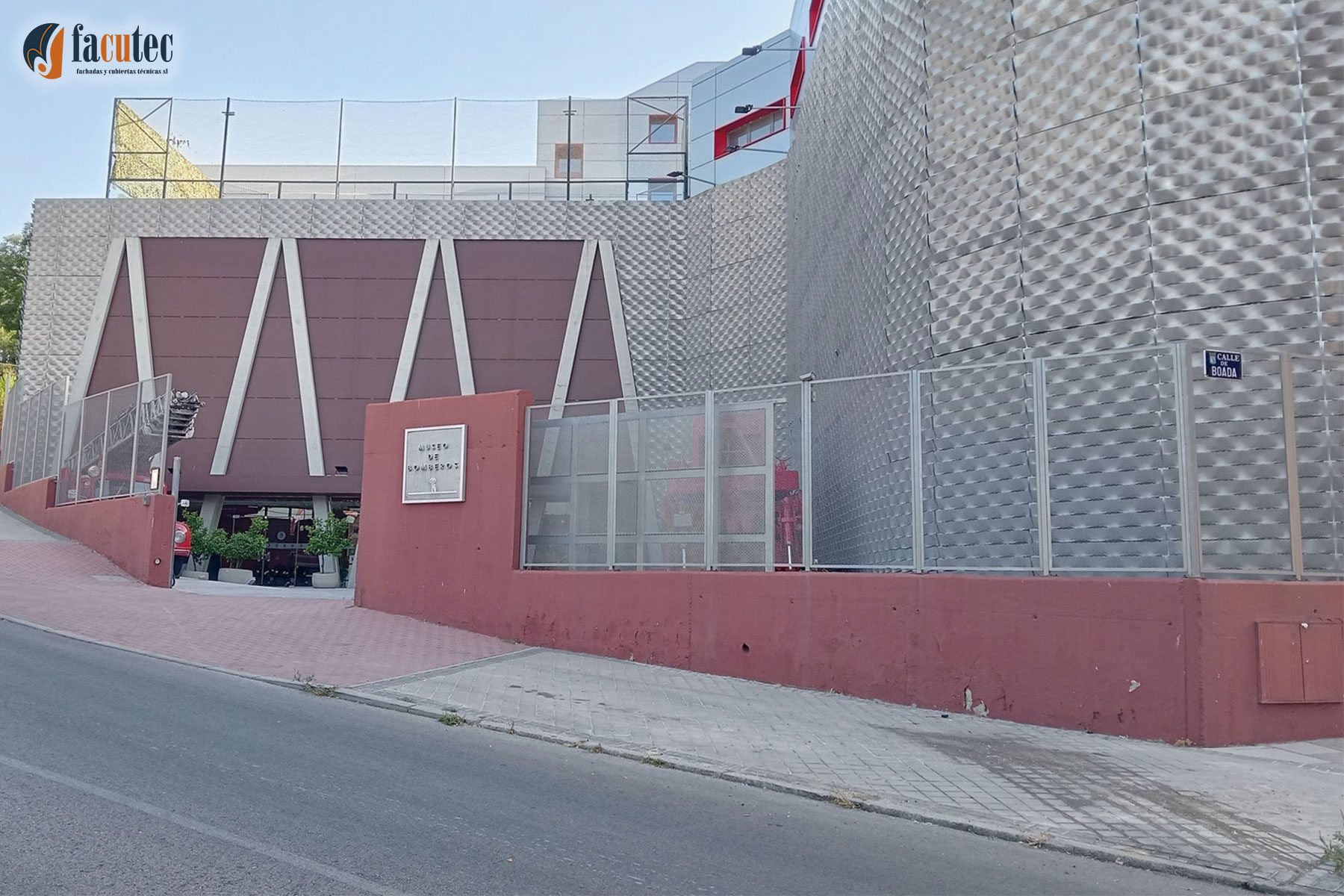 En la rehabilitación de infraestructuras públicas también está presenta el Grupo AMS, y en el caso de la rehabilitación del parque de bomberos número 8 y el museo de Bomberos de Madrid, situado en el distrito madrileño de Vallecas, nuestra participación ha sido destacada, donde rehabilitamos la mayor parte de los edificios mediante la instalación de una fachada ventilada de panel composite de aluminio y algunos alzados, mediante la instalación de mallas estiradas en fachadas